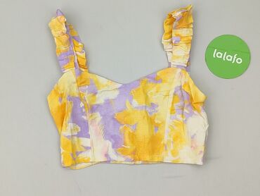 Top damski Stradivarius - Model: bez rękawów, okrągły dekolt - Kolor: intensywna żółć - Wzór: drobne białe kwiaty na całej powierzchni - Tkanina: elastyczna faktura „crinkle/szmizowany” materiał -...