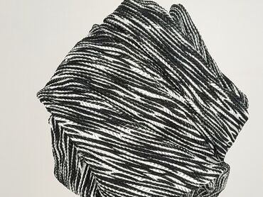 - Wzór i faktura: czarno‑biały, drobny, ukośny „szarpany” print; tkanina z wyraźną, karbowaną strukturą