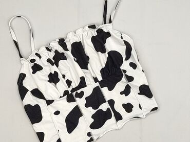 Top na ramiączkach SHEIN - Model: krótki top/crop top na cienkich ramiączkach - Wzór: czarno-białe plamy „krowie” - Dekolt: delikatnie falowany, lekko serduszkowy - Materiał: elastyczna, gładka dz...Stan: