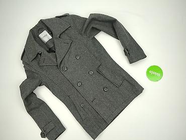 Płaszcz damski H&M, rozmiar EU 34 (US 4, CA 4, CN 165/84A). Kolor: ciemnoszary/melanż. Opis: - Dwurzędowy fason inspirowany militarnym stylem, z dużym kołnierzem. - Dekoracyjne metalowe guziki...