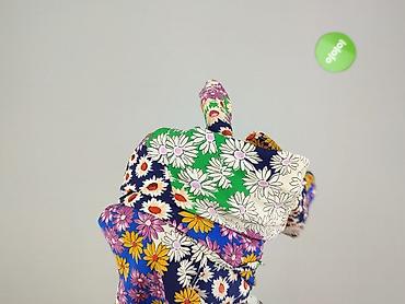 - Wzór i kolory: patchworkowy nadruk w stokrotki i margaretki; miks granatu, zieleni, ecru, różu, fioletu, żółci i pomarańczu