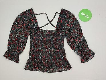 - Wzór: drobny, gęsty nadruk w kwiaty na ciemnym tle (czerwień, zieleń, biel)