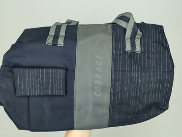 - Kolorystyka: granat z szarym panelem i pionowym, drobnym przeszyciem; nadruk „CABBAGE” na panelu frontowym
