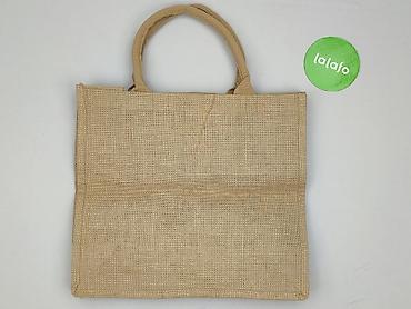 Torebka unisex z juty z okrągłymi uchwytami - Materiał: naturalna juta w kolorze beżowym; obszycia w tonacji piaskowej - Uchwyt: dwa sztywne, okrągłe uchwyty z drewna/bambusa, wygodne do noszenia ...Stan: