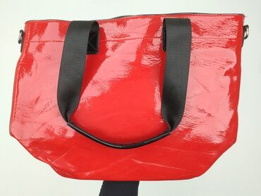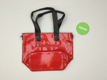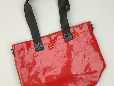 Torebka damska na ramię - Kolor: czerwony z beżowymi wstawkami i paskiem - Materiał: gładka tkanina/syntetyk z elementami ze skóry ekologicznej (beżowe obszycia i narożniki) - Zapięcie: klapka na ...