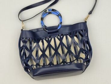 Torebka damska shopper w kolorze granatowym - Materiał: skóra ekologiczna o drobnej fakturze - Kształt: miękki shopper z lekko zaokrąglonym dołem - Zapięcie: suwak na górze - Wnętrze: jedna pojemn...Stan: