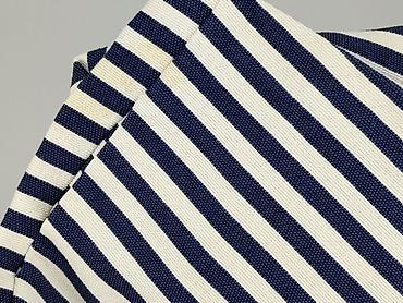 Dwurzędowa marynarka damska marki Zara Trafaluc w paski. Marynarka wykonana jest w 100% z bawełny, co zapewnia komfort noszenia. Charakteryzuje się granatowo-białymi paskami, kołnierzem z klapami oraz długimi rękawami z mankietami zapinanymi na guziki. Zapięcie na cztery guziki z przodu dodaje jej klasycznego wyglądu. Idealna na co dzień, do stylizacji casualowych.