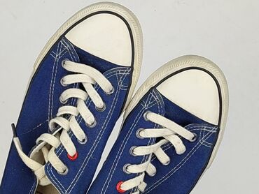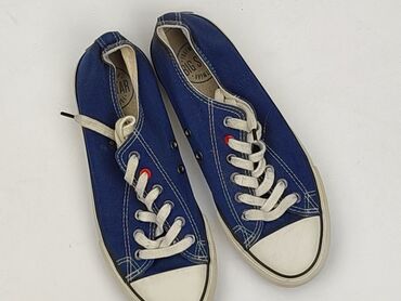 Trampki damskie high-top, granatowe - Model: klasyczne trampki za kostkę - Rozmiar: 38 (oznaczenie na podeszwie) - Cholewka: materiał tekstylny w kolorze granatowym - Sznurowanie: białe, klasyczne...