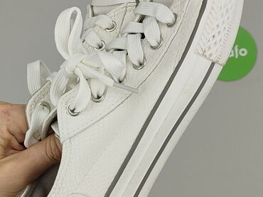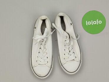 Białe trampki damskie – rozmiar 39 - Klasyczny model sznurowany - Cholewka z tkaniny w kolorze białym - Okrągły nosek - Podeszwa z tworzywa, płaska, z bieżnikiem - Metalowe oczka na sznurowadła - ...