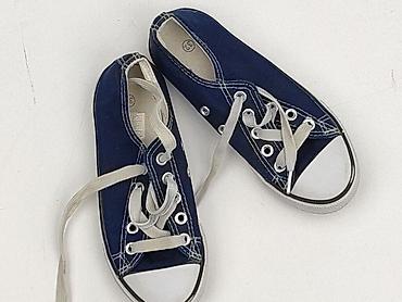 Trampki niemowlęce/chłopięce Sinsay - Rozmiar: 26 (oznaczenie wewnątrz) - Kolor: granatowe/chabrowe cholewki, biała podeszwa i białe sznurówki - Materiał cholewki: tkanina (canvas) - Zapięcie: szn...Stan: