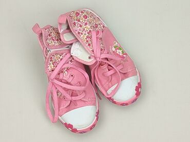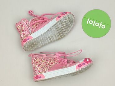 Różowe tenisówki dziecięce na rzepy - Rozmiar podeszwy: 27 (oznaczenie widoczne na spodzie) - Kolor: jasny róż - Zapięcie: podwójne rzepy dla łatwego zakładania - Materiał wierzchni: tkanina - Pod...Stan: