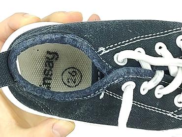 Trampki chłopięce niemowlęce - Rozmiar: 20 (oznaczenie na podeszwie) - Kolor: granatowy/niebieski z białymi noskami i detalami - Materiał cholewki: tekstylny w stylu jeansu - Zapięcie: dwa rzepy u...