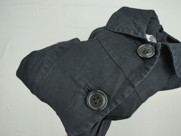 Krótki trencz damski marki H&M DIVIDED w kolorze niebieskim. Ten dwurzędowy płaszcz ma duże, czarne guziki i kołnierz z klapami, dodając mu klasycznego wyglądu. Dwie kieszenie z przodu są praktyczn...