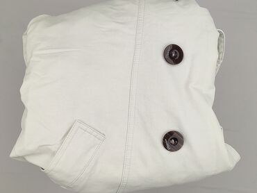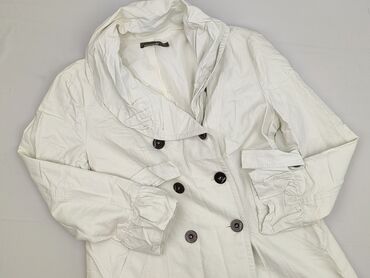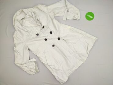 Płaszcz damski Xdye, rozmiar S (mex 26), kolor ecru/śmietankowy. - Fason trenczowy z wysoką, stojącą stójką - Zapięcie na duże, dekoracyjne guziki z przodu - Dwie kieszenie naszywane z przodu - Re...