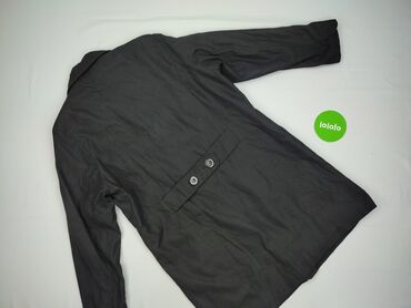 Czarny damski płaszcz/trencz z lekkiej, połyskującej tkaniny syntetycznej. - Długość do połowy uda. - Klasyczne szerokie klapy. - Zapięcie na cztery guziki z przodu (dwurzędowe w układzie 2+2). ...