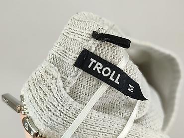 Długość i szerokość standardowa dla M; sweter dobrze układa się na sylwetce i pasuje do jeansów, spódnic oraz stylizacji warstwowych. Marka: TROLL (etykieta widoczna na zdjęciach).
