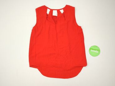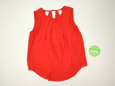 Czerwona damska bluzka bez rękawów - Krój: luźny, lekko wydłużony tył z zaokrąglonym dołem - Dekolt: V-neck wysmuklający szyję - Rękawki: krótkie, z delikatną falbaną przy ramionach - Materiał: le...