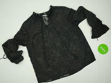 Bluzka damska H&M, rozmiar S - Kolor: czarny, półtransparentny - Fason: romantyczny, z efektowną falbaną/żabotem przy dekolcie - Dekolt: w kształcie V, z troczkami do wiązania - Rękawy: długie, za...