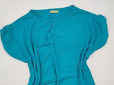 Swetrowa bluzka damska w kolorze morskim/ciemnoturkusowym. - Fason: luźny, typu nietoperz z obniżoną linią ramion - Dekolt: miękko układający się, lekko wodny - Rękawy: 3/4 z szerokimi mankietami ...