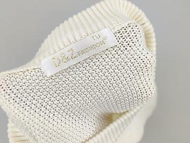 Sweter damski, dzianinowy, kremowo-biały - Fason: luźny, prosty krój - Dekolt: w serek (V-neck) - Rękawy: długie - Splot: gruby, wyraźny, miękki w dotyku - Wykończenia: ściągacze przy mankietach i...