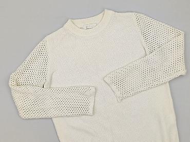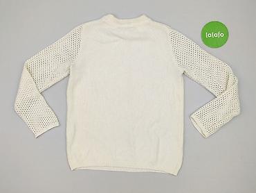 Sweter damski, biały, ażurowy - Krój: klasyczny, z okrągłym dekoltem, długie rękawy - Wzór: delikatny ażurowy splot z dekoracyjnymi liniami z przodu; dół wykończony ząbkowaną falą - Materiał: 100%...