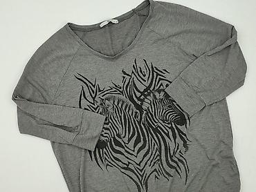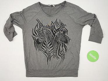 Szara damska bluza z krótkim rękawem, ozdobiona wzorem w panterkę. Charakteryzuje się okrągłym dekoltem i ściągaczami na dole. Idealna do codziennych, swobodnych stylizacji. - Rozmiar: L - Marka: ...