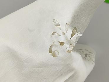 - Wzór: ażurowe, wycinane motywy roślinne umieszczone centralnie i na końcach paneli – subtelna, lekko połyskująca tkanina