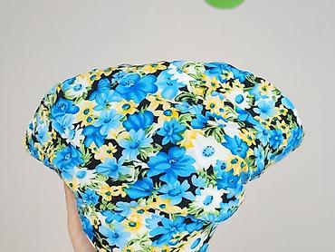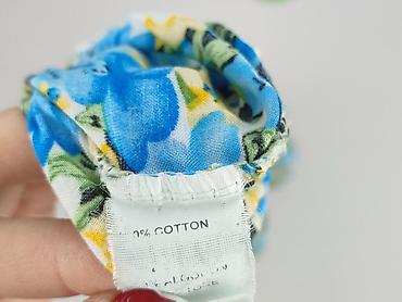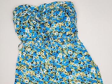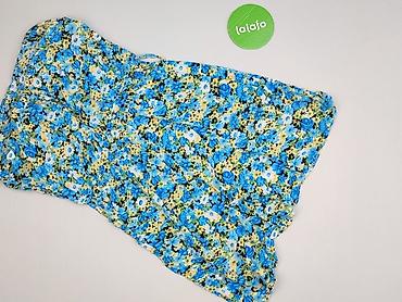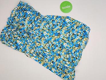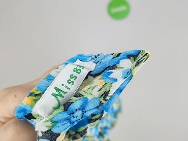 - Wzór: gęsty, kwiatowy print w odcieniach niebieskiego, turkusu, żółci i bieli na ciemnym tle