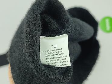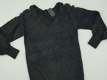 Czarna sukienka-sweterek z golfem dla kobiety. - Fason: dopasowany, dzianinowy, długość mini/za biodra - Kołnierz: wysoki, prążkowany golf - Rękawy: długie, zakończone ściągaczami - Dół: szeroki, ...Rozmiar: