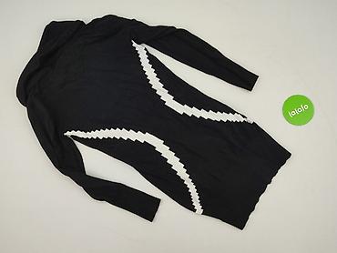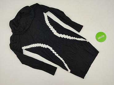 Sukienka/tunika damska z kapturem - Fason: dopasowana tunika lub krótka sukienka swetrowa - Kolor: czarny; rękawy w formie wszytych ocieplaczy w czarno‑szare paski - Rękawy: warstwowy efekt – krót...