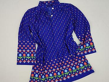 Niebieska tunika/sukienka z długim rękawem - Kolor: głęboki niebieski - Krój: luźna, prosta linia, długość przed kolano - Zapięcie: półplisa z trzema guzikami z przodu - Kołnierz/stójka: wysoka, m...
