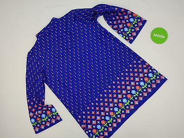 Bluzka/tunika damska z długim rękawem – wzór w odcieniach niebieskiego - Fason: prosta tunika z okrągłym dekoltem, długość zakrywająca biodra - Rękawy: długie - Wzór: gęsty roślinny/ornamentalny p...