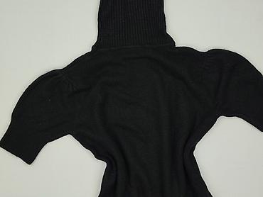 Czarna, dzianinowa sukienka/sweter tunikowy damski z golfem i krótkim rękawem.