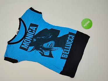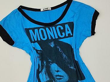 Damska koszulka EMT S/M – niebieska z czarnymi wykończeniami, nadruk „MONICA BELLUCCI” i portret na przodzie.
