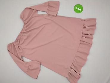 Bladoróżowa tunika/bluzka damska z długim rękawem. Zwiewny, cienki materiał o delikatnie marszczonej fakturze. Dekolt w kształcie litery V zdobiony szeroką koronkową aplikacją z okrągłymi motywami ...