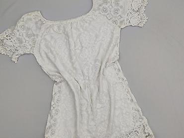 Biała tunika/sukienka damska z koronkowymi wstawkami na ramionach. - Kolor: czysty biały - Krój: luźny, z obniżoną linią ramion - Rękawy: krótkie, wykończone ażurową koronką w kwiaty - Dekolt: w k...