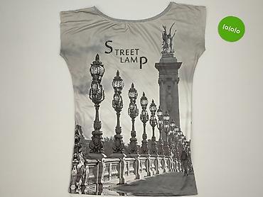 - Kolorystyka: odcienie szarości; przód z fotonadrukiem mostu i latarni miejskich, napis “STREET LAMP”; detaliczny nadruk z drobnymi aplikacjami imitującymi dżety