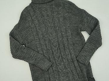 Szary sweter tunikowy damski z golfem i krótkim rękawem - Fason: dopasowana, tunikowa długość - Kołnierz: duży, miękki golf - Rękaw: krótki - Dzianina: grubszy splot z wyrazistymi warkoczami z prz...Rozmiar: