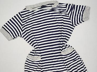 Damska tunika/sukienka z krótkim rękawem - Rozmiar z metki: 46 - Krój: luźny, asymetryczny, z marszczeniem po boku - Dekolt: okrągły - Wzór: połączenie szerokich biało‑czarnych pasów z panelami w ...