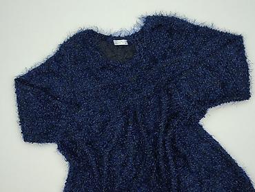 Luźna tunika/sukienka dzianinowa damska - Kolor: granatowy/denimowy - Rozmiar z metki: XL - Fason: oversize, prosty, z opuszczoną linią ramion - Rękaw: 3/4 - Dekolt: łódka - Długość: do połowy uda...