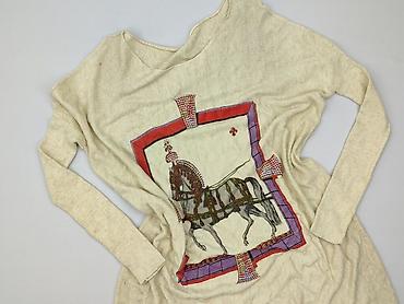 Sweter/tunika damska z długim rękawem, beżowa, z dużym nadrukiem konia w ramie i aplikacjami z połyskujących dżetów.