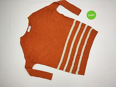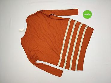 Damska tunika/bluzka z długim rękawem - Krój: prosta tunika, długość do bioder, dekolt w serek (V-neck) - Wzór: poziome pasy w odcieniach brązu, rudości, beżu i turkusu; efekt „przetartej” faktury...