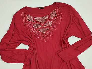 Bluzka damska Mario, kolor czerwony, z długim rękawem. Dekolt półokrągły ozdobiony aplikacją z drobnych, połyskujących dżetów ułożonych w geometryczny wzór. Materiał miękki i elastyczny: 95% wiskoza, 5% lycra (metka: Viscon), przyjemny dla skóry i dobrze układający się na sylwetce. Uszyta w Turcji.