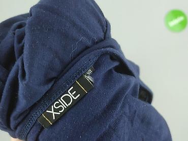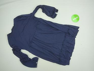 Damska bluzka/tunika z krótkim rękawem, rozmiar XXL. - Fason: lekko luźny, z otwartą wstawką z przodu imitującą rozpięcie; dekoracyjne trzy guziki na środku. - Kolorystyka: granatowa baza, rękawy ...