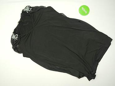 Czarna damska tunika/bluzka z połyskującymi drobinkami i ozdobnym, beżowym dekoltem w kształcie litery V. - Rozmiar z metki: 4XL - Skład: 100% poliester - Krój: luźny, wydłużony, lekko asymetryczn...
