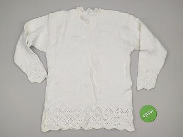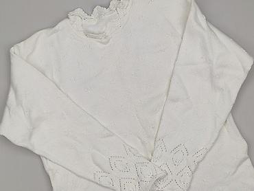 - Detale: ażurowe wykończenia na dole i przy mankietach w kształt rombów; drobny, dyskretny wzór na całej dzianinie; falbankowy, delikatnie marszczony dekolt pod szyję