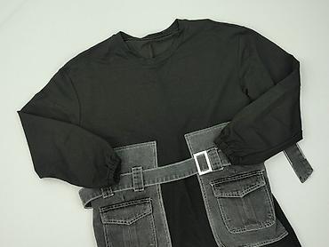 Sukienka/tunika damska NU. (rozmiar 38) - Kolor: czarny - Fason: prosta, lekko przedłużona tunika z długim rękawem i okrągłym dekoltem - Charakterystyczny element: duża aplikacja z przodu w formie...