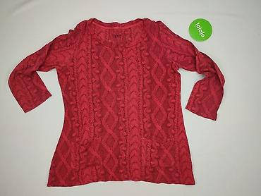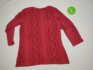 Czerwony sweter damski Fargareta - Klasyczny, miękki dzianinowy sweter tunikowy - Dekolt w kształcie litery V z krótkim zamkiem błyskawicznym - Rękawy 3/4 z szerokimi mankietami - Dół z dekoracyjn...