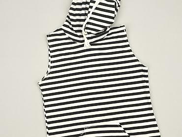 Damska tunika bez rękawów z kapturem w czarno-białe poziome paski