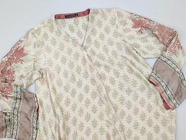 Bluzka tunikowa damska Lady Style – rozmiar M - Kolor: kremowy/ecru z brązowym, roślinnym nadrukiem (dolna część przodu i dołem z tyłu delikatnie przebija wzór) - Krój: długa tunika, lekko rozszer...